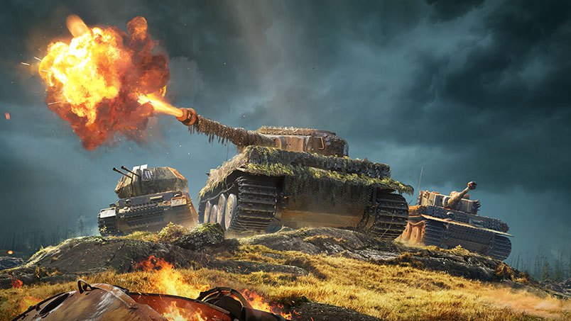 The “Two Fronts” collectible premium pack is a perfect choice for players who haven’t started the German tree yet, or for anyone who loves Tigers! This pack contains a lineup of premium vehicles offering you more spawns in battle, which in turn will net you more Research Points! The pair of premium Tiger H1 heavy tanks are inspired by Tiger tanks on the Eastern and Western fronts, with aesthetic elements inspired by each theatre. These Tigers both feature some additional track armor, and greater gun depression over the corners of the hull due to the removal of the anti-infantry mortars. Aside from this, they both feature the same legendary 88 mm cannon with destructive APHE rounds! Protecting the skies is the premium Ostwind II, complete with camouflage netting and Ostketten tracks, increasing its mobility over rough terrain. Its pair of 37 mm Flak44 cannons can equip both APHE and HE rounds, allowing you to shred lightly armored vehicles and disable heavier ones, and take aircraft out of the sky with only a few hits! |