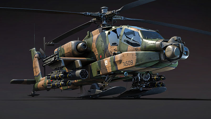 AH-64DJP (AT) is a modification of the Japanese AH-64DJP attack helicopter. Unlike the standard AH-64DJP, this variant is not equipped with the mast-mounted radar, which reduces weight and simplifies the overall layout. An additional distinguishing feature is the installation of landing skids on the landing gear supports. This solution improves stability and facilitates operations from unprepared, soft, or snow-covered surfaces. The helicopter is armed with the 30 mm M230E-1 cannon and can carry various external weapon stores. For engaging ground targets, Hydra-70 rockets are available, while the primary anti-tank capability is provided by AGM-114K Hellfire II guided missiles. AIM-92 Stinger/ATAS missiles are used to counter aerial threats. The aircraft is also equipped with night vision devices and countermeasure dispensers (flares/chaff) with a capacity of 30. |