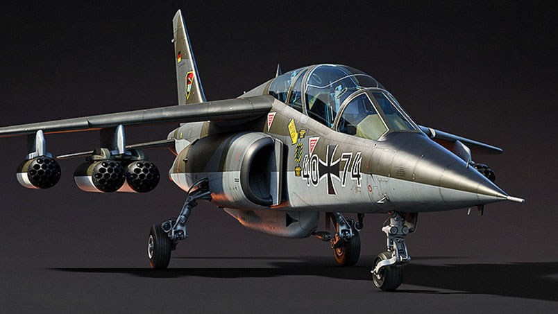 The Alpha Jet is a light, twin‑engine, subsonic trainer aircraft with the capability for carrying out light attacks. Its first flight was on January 9th 1974, it entered service in March 1979 and retired in 1998. The requirements for the aircraft were formulated with consideration of the specifics of the European theater of military operations, where a high density of armored vehicles and a developed air‑defense system were expected. The Alpha Jet’s fixed armament is a 27 mm Mauser BK‑27 cannon with 150 rounds of ammunition. External armament includes six Mk 82 Snakeye retarded free‑fall bombs, six Type 25 standard 250 kg high‑explosive bombs, and two Mk 82 500 lb bombs. It is also equipped with 114 FFAR Mighty Mouse rockets. If necessary, flight range is increased by using external fuel tanks. The aircraft uses the livery of the 41st Fighter‑Bomber Wing (JaboG 41), which was based at Husum Air Base and operated the Alpha Jet. |